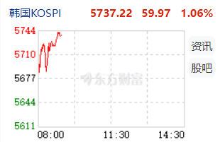 韩国综合指数涨1.06%报5737.22点,再创历史新高。权重股方面,韩华宇航涨超5%,未来资产证券、韩亚金融集团涨超2%,友利金融集团涨、KB金融集团涨超1%;SK SQUARE跌超1%。
