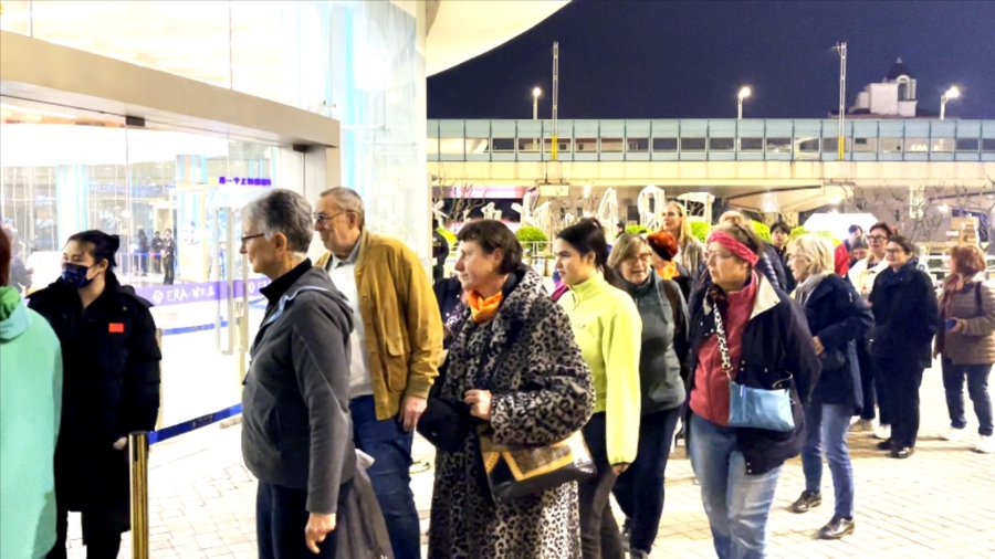 晚上六点,旅游大巴送来源源不断的外国游客 诸葛漪摄